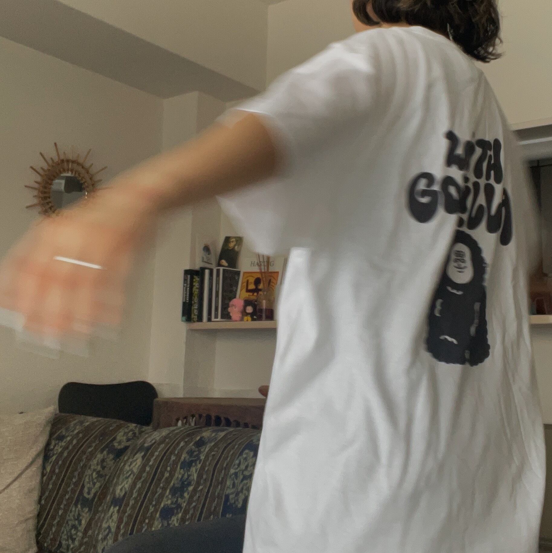 with Gorillaの白Tにブラックロゴが背中に入った使いやすいデザインです。